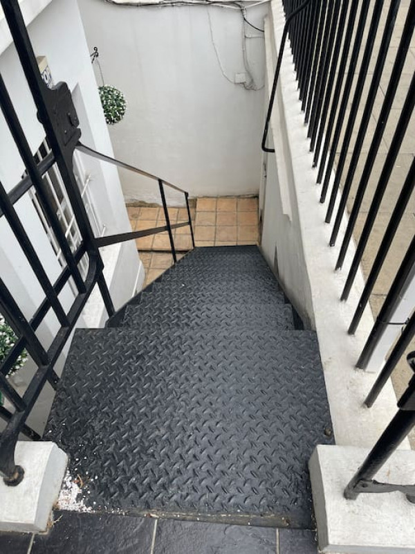 it is in the lower ground and there are 15 steps to get to the front door
